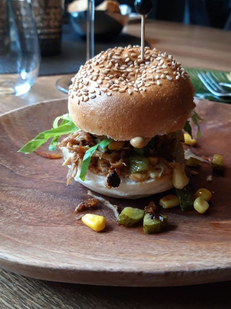 We kiezen voor het verrassingsmenu met 8 culinaire gerechtjes, maar de amukes kunnen ook per stuk besteld worden. De gerechtjes worden geserveerd op prachtige bordjes waar de chef duidelijk een zwak voor heeft. Er is nagedacht over de vorm, kleur, grootte van het bord en dit zorgt voor de ideale smaakbeleving. Heerlijk … denk hierbij nog aangepaste wijntjes en dan hoef ik toch niet meer te zeggen dat je hier van pure en verfijnde gerechten kan genieten.