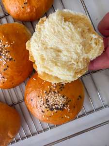 De perfecte burgerbroodjes zijn zacht genoeg om mee te geven bij elke hap, maar stevig genoeg om al het lekkers – van sappige burger tot romige saus – te dragen zonder uit elkaar te vallen. De korst is licht en glanzend, het kruim luchtig en veerkrachtig. En dan die subtiele zoetheid, die net genoeg balans geeft bij hartige toppings.