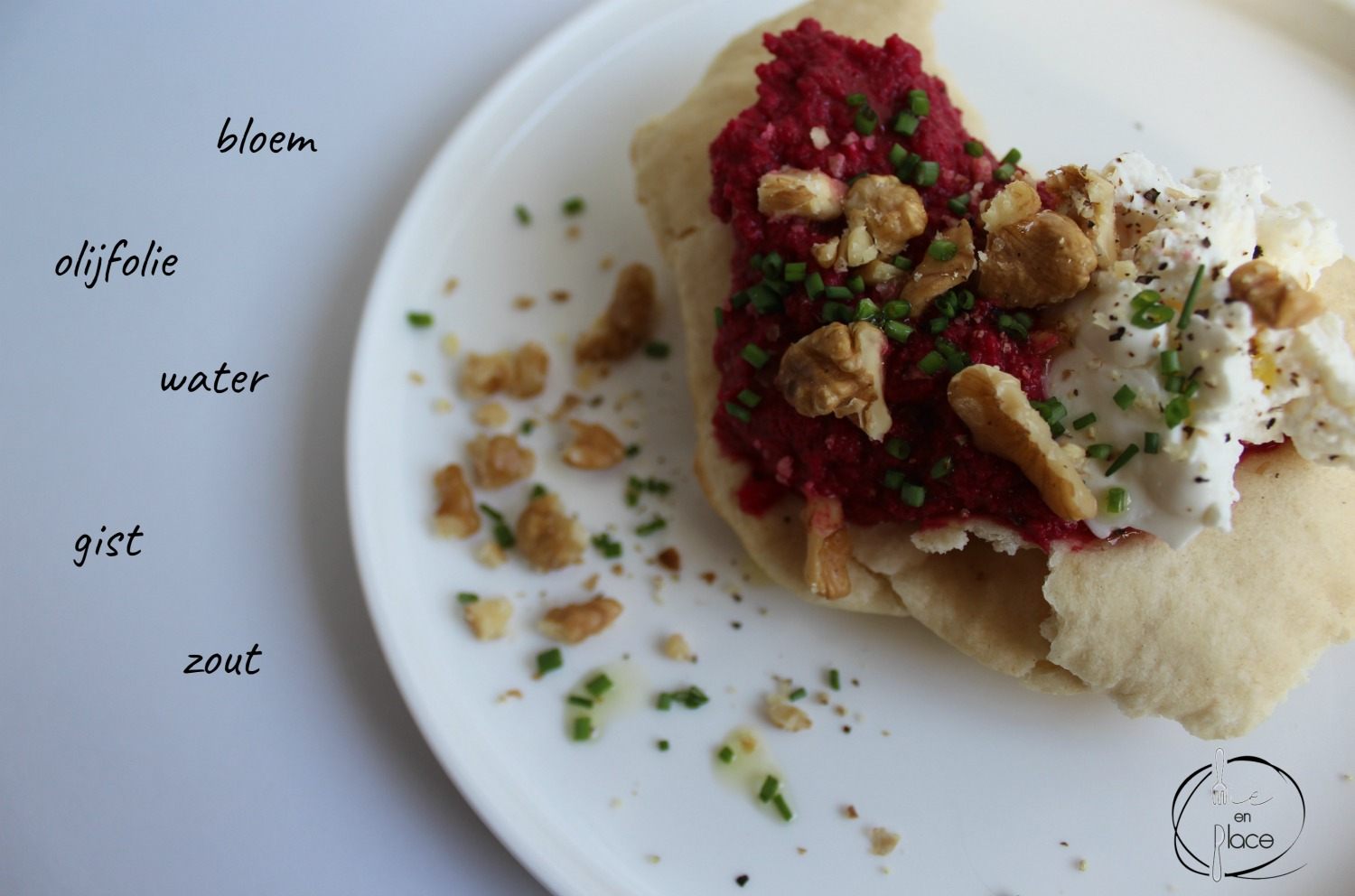 Zo’n pittabroodje samen met bijvoorbeeld lekkere biethummus en ricotta smaakt heerlijk voor lunch. Terwijl onze dochter steevast kiest voor shoarmakip met groentjes tussen haar pittabroodje. Hoewel ze waarschijnlijk hiervoor kiest omdat ze weet dat zij dan de shoarmakruidenmengeling mag maken in de mortier?