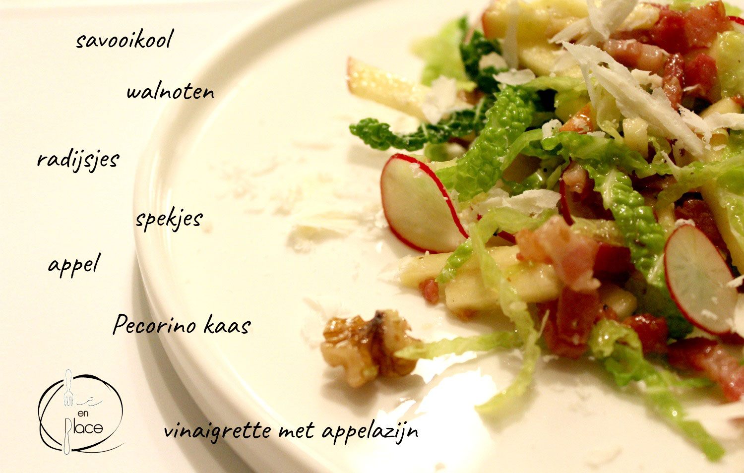 Weer eens iets helemaal anders is deze fantastische savooisalade met radijsjes. Misschien is het wel de geribbelde bladstructuur van de savooikool dat deze salade een bijzonder speels effect geeft. Of is het de combinatie van de smaak van savooikool met het pittige van de radijsjes en het zoete van de appel waar ik dol op ben? De spekjes nemen de zoute kant voor hun rekening en de “crunchy” waar ik zo van hou in een salade komt van de walnoten. Ooh wat is mijn liefde voor deze salade weer groot! Benieuwd of jullie hier ook voor smelten?